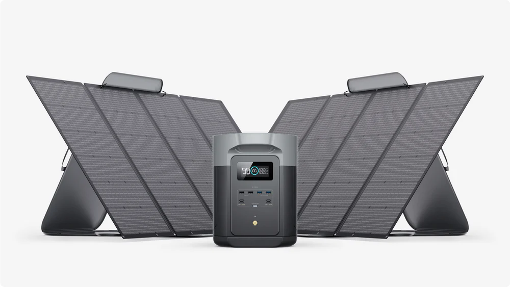 EcoFlow's smart (MPPT) algorithm automatically detects voltage and current in real-time to give you optimum solar generation throughout the day, even during cold and cloudy days. With a solar input of 1000W, connect up to 2 EcoFlow 400W Portable Solar Panels or 4 sets of 220W Bifacial Solar Panels.