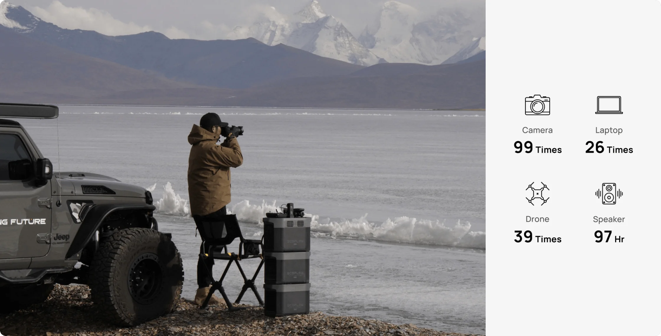 DELTA 2 offers capacities of 1-3kWh, while DELTA 2 Max provides energy storage from 2-6kWh. Get 10 years of daily use before hitting 80% of its original capacity. That’s down to its LiFePO4 battery chemistry, giving you 3000 full cycles for a 6× longer life.